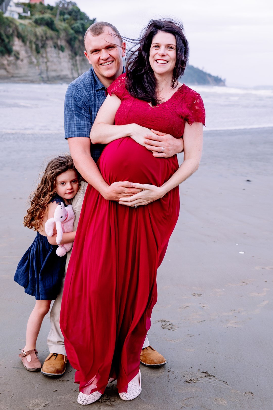 Awesome maternity family photo shoot. This was a windy evening at Orewa Beach just after a storm.