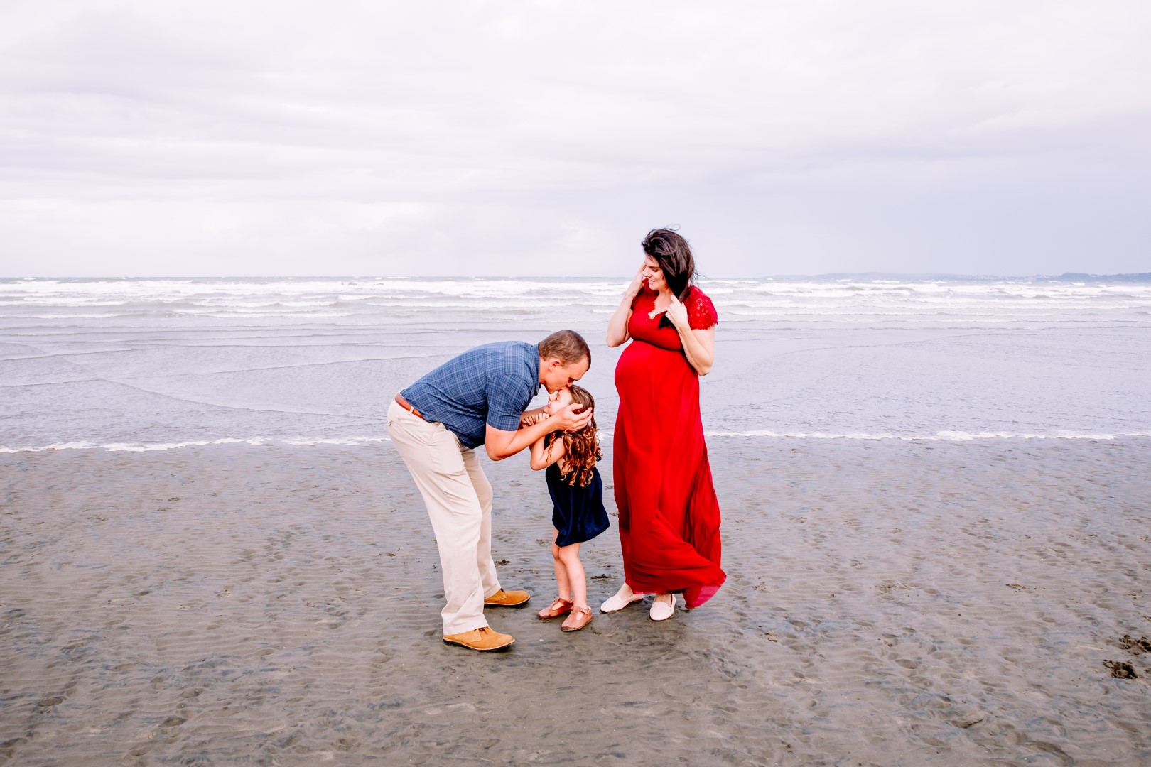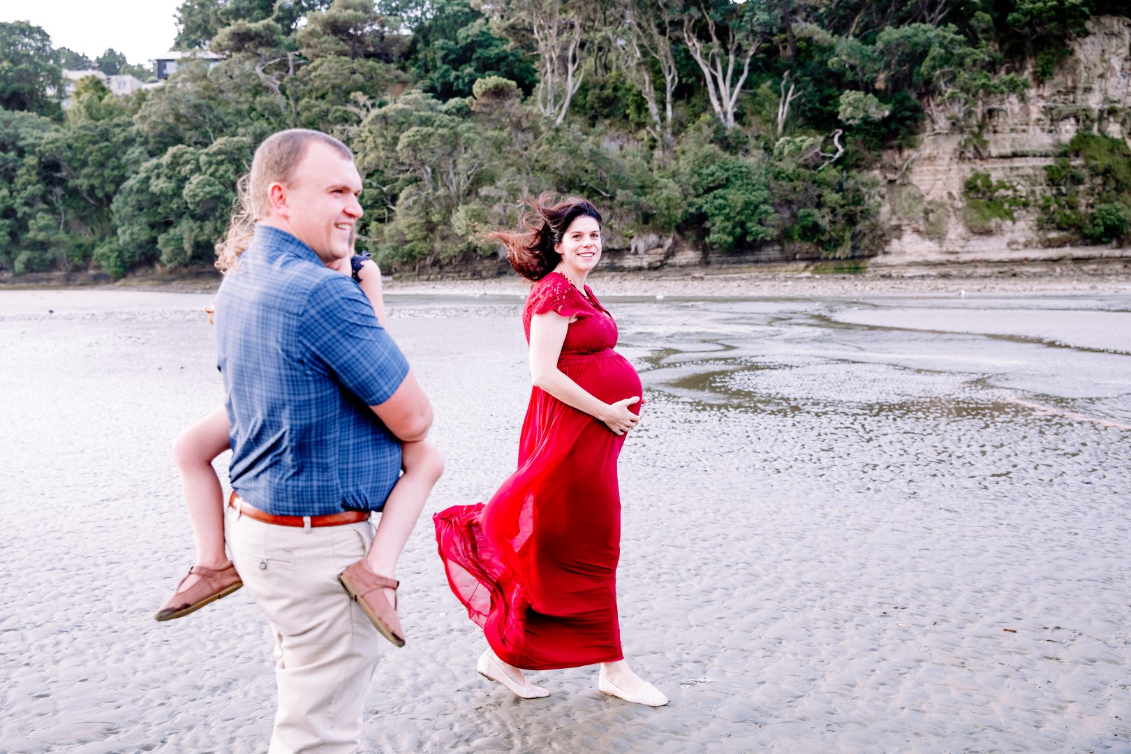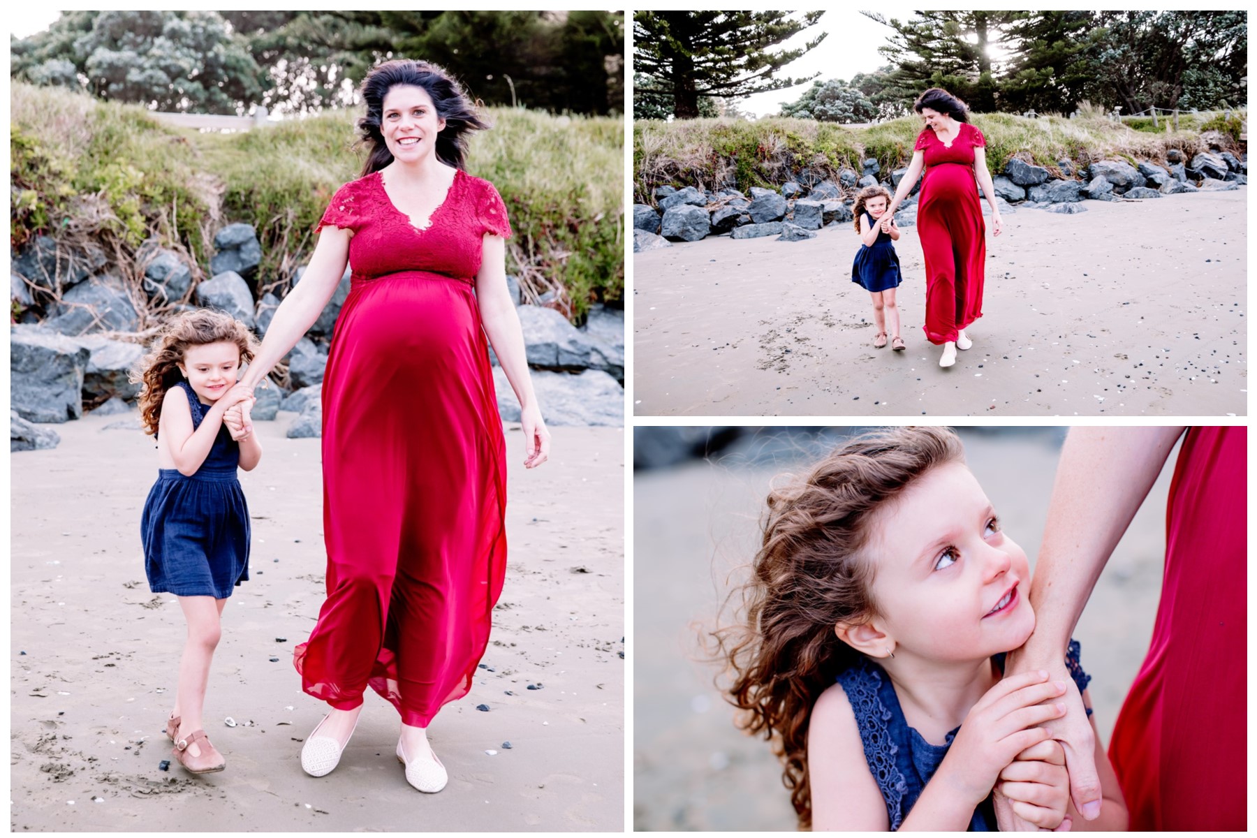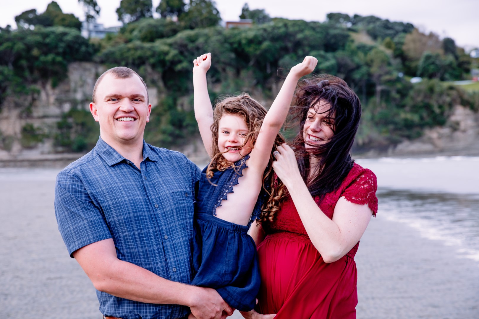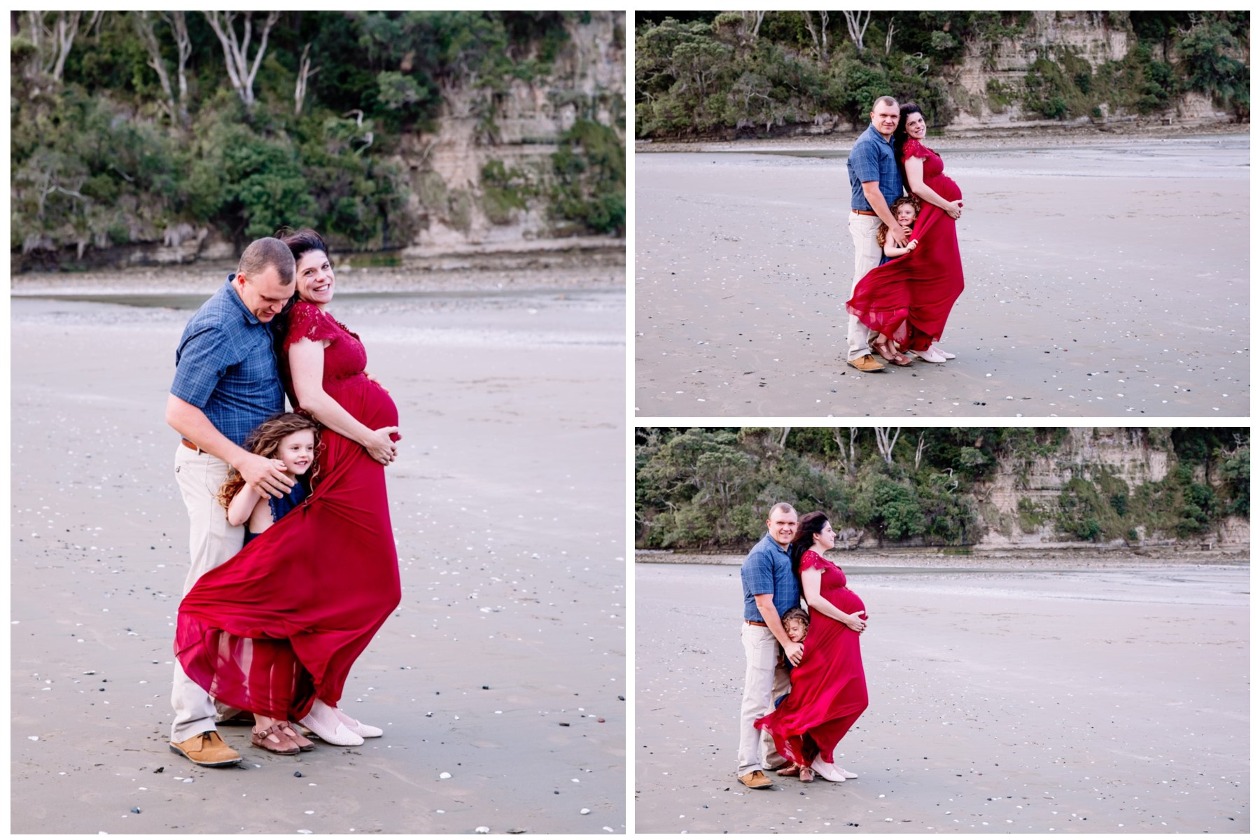 Awesome maternity family photo shoot. This was a windy evening at Orewa Beach just after a storm.