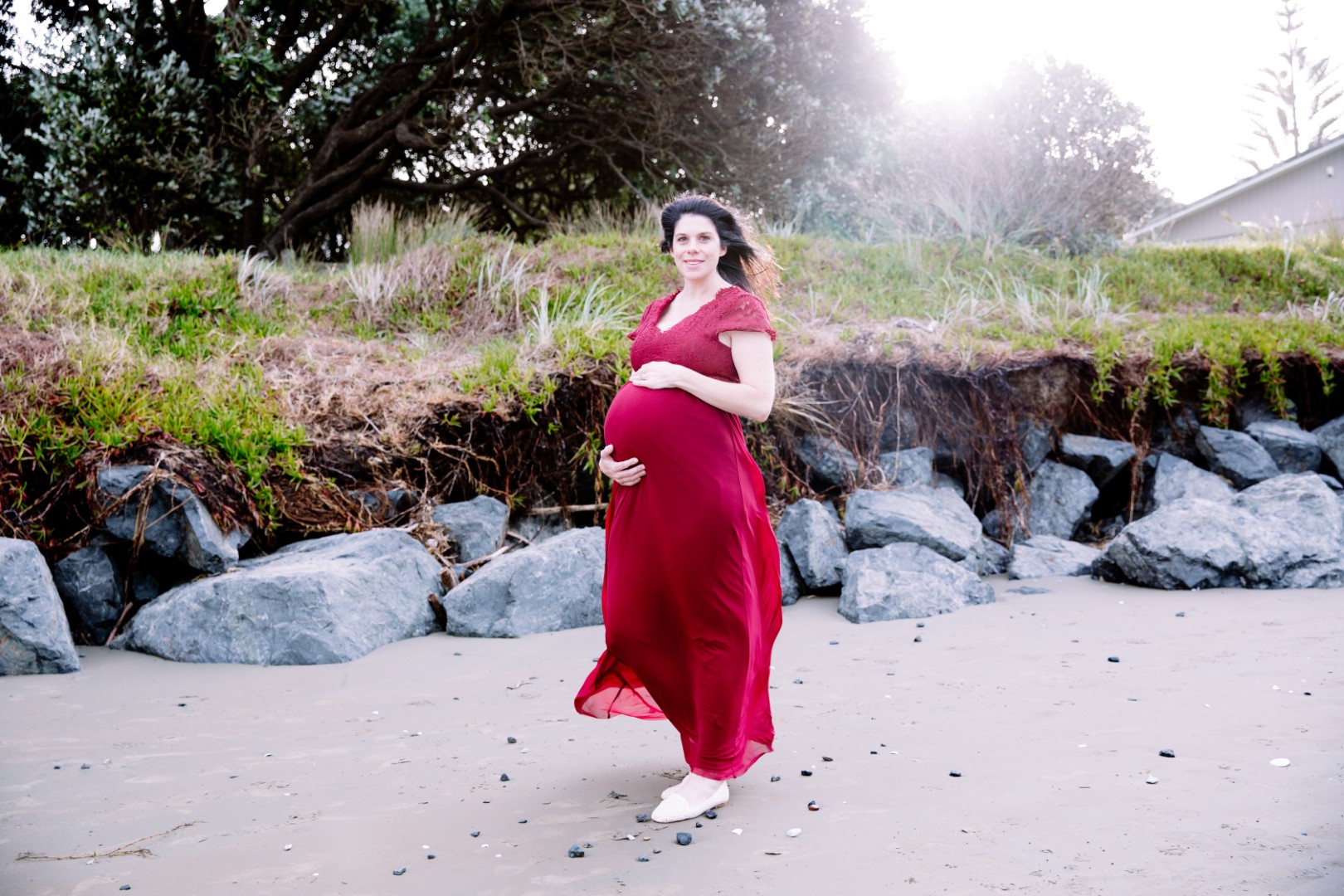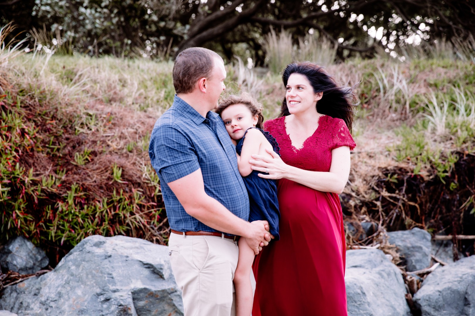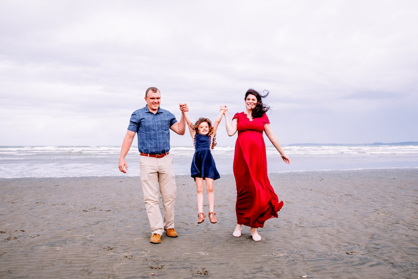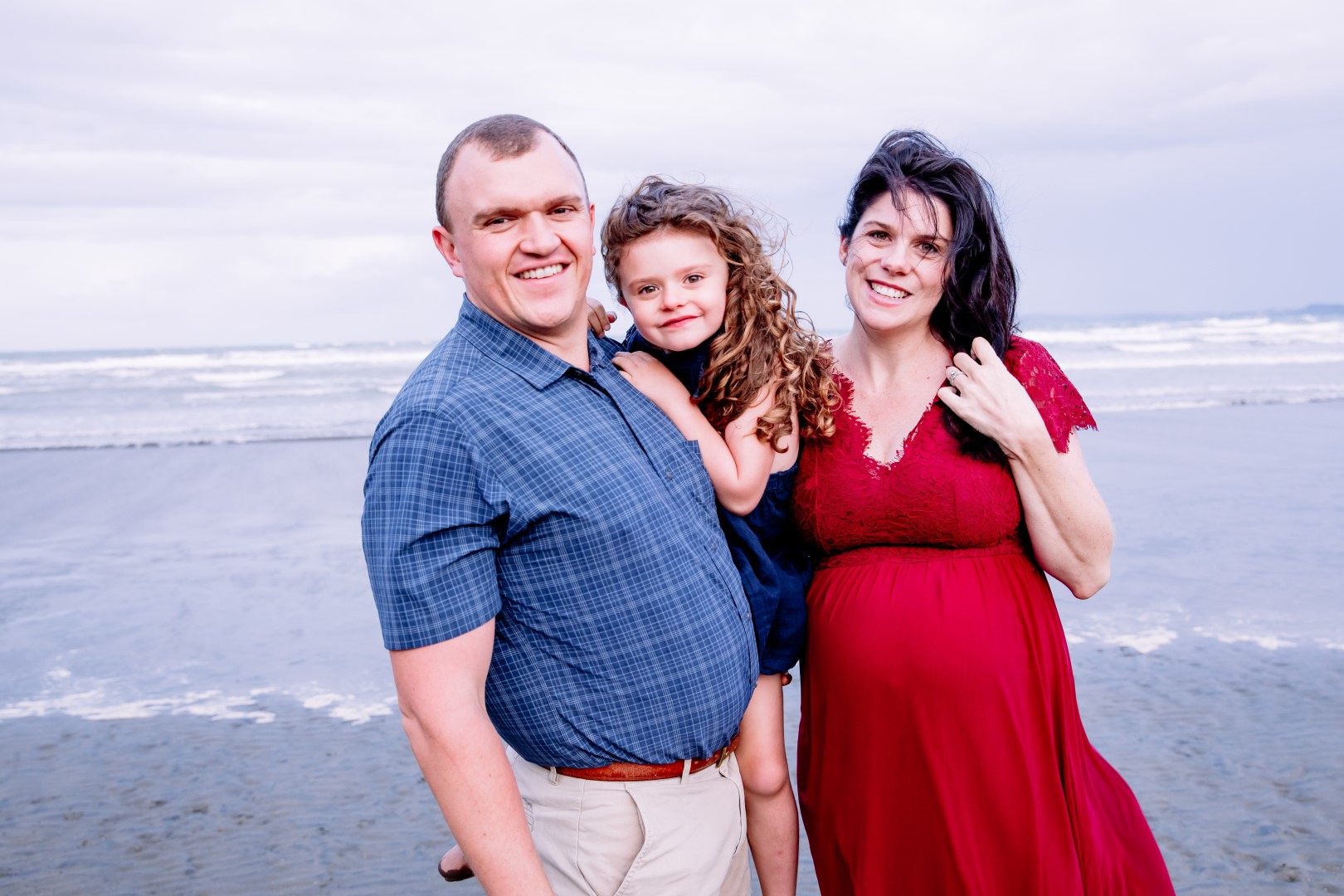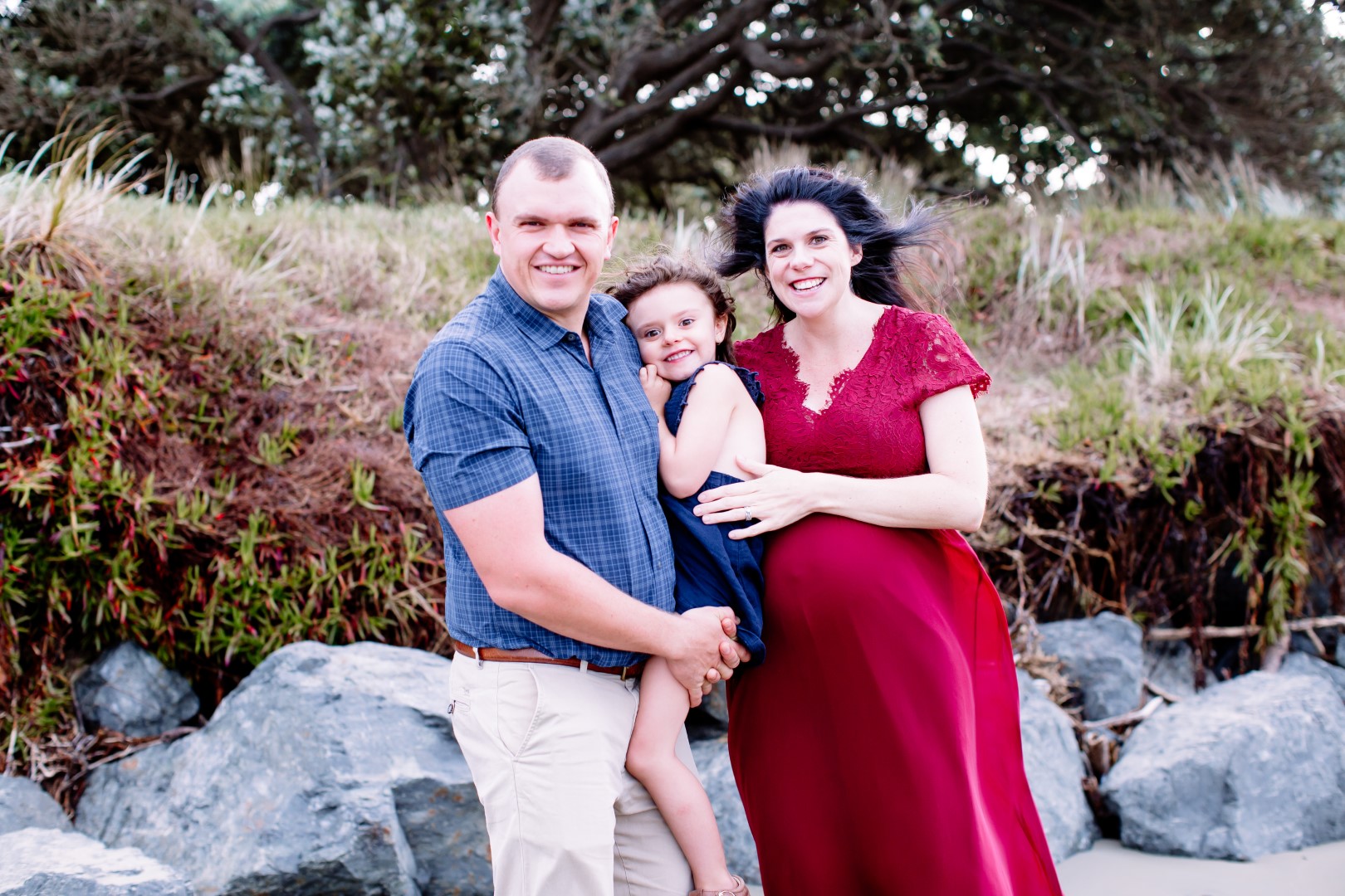 Awesome maternity family photo shoot. This was a windy evening at Orewa Beach just after a storm.